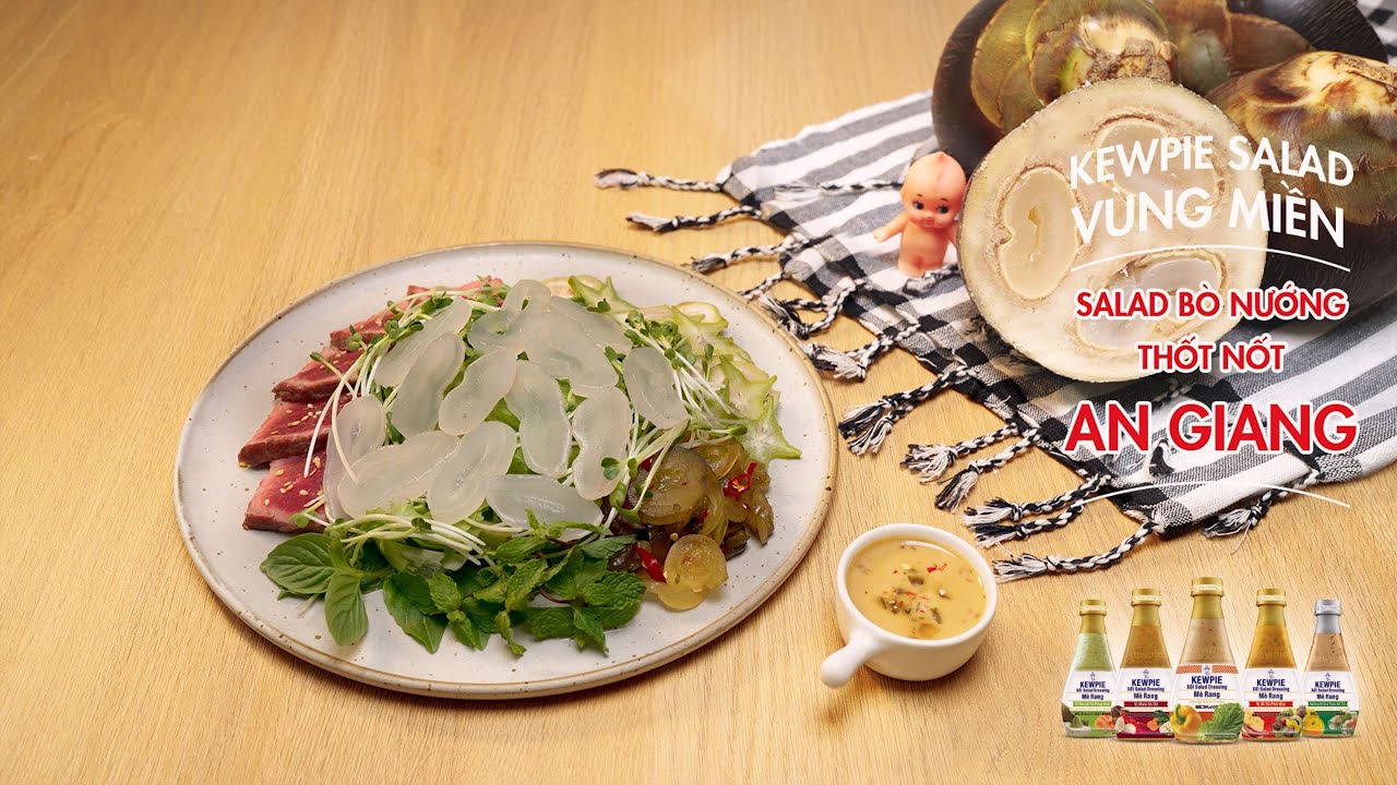 Thốt nốt mang vị ngọt nhẹ, béo bùi đặc trưng, nay được dùng trong salad thịt thăn bò nướng hòa quyện cùng xốt Mè Rang KEWPIE đậm đà, thơm mè để món ăn thêm tròn vị